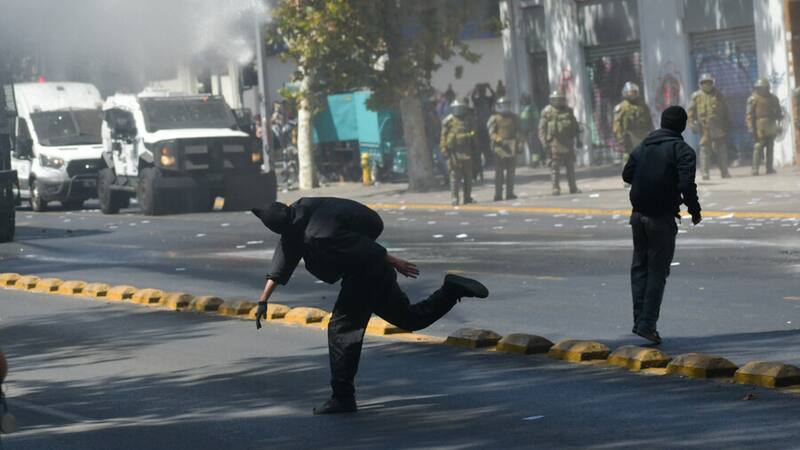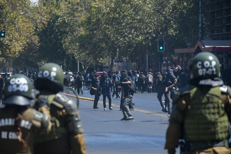 Manifestantes se enfrentaron a Carabineros en algunos puntos de la principal arteria capitalina.