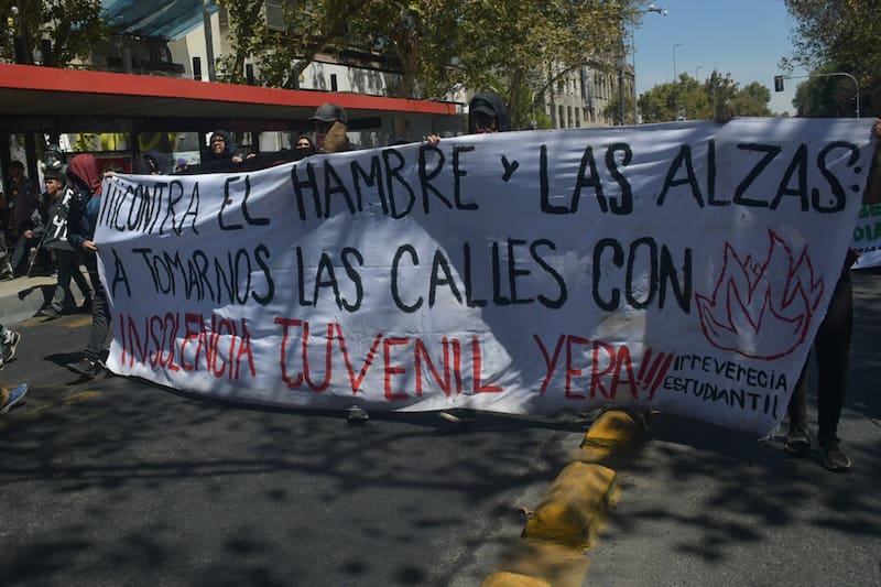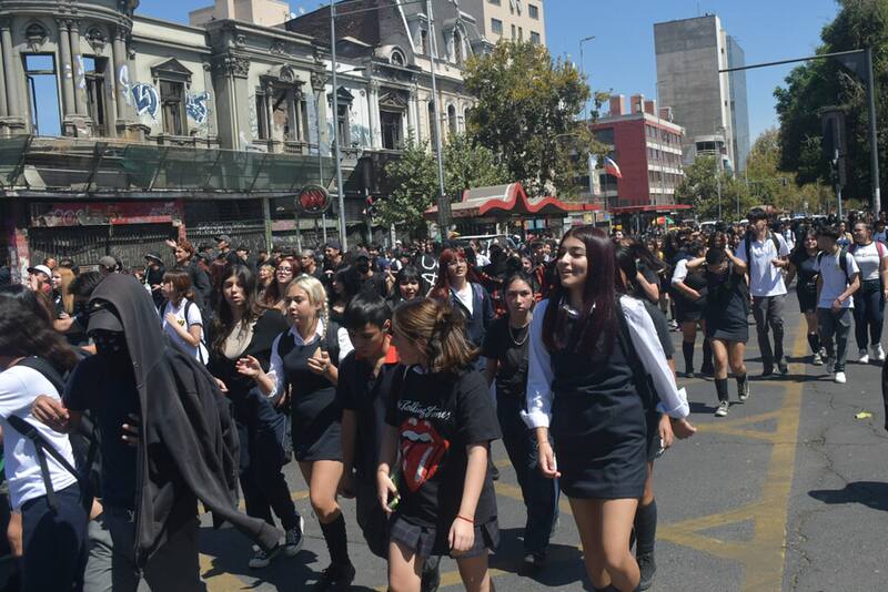 A eso de las 13.30, los escolares, de varios recintos educacionales de la capital, se congregaron en avenida Ricardo Cumming con la Alameda y comenzaron a desplazarse hacia el oriente. Dentro de sus demandas están las mejoras en los liceos, educación sexual integral y protocolos contra violencia de género, entre otras.