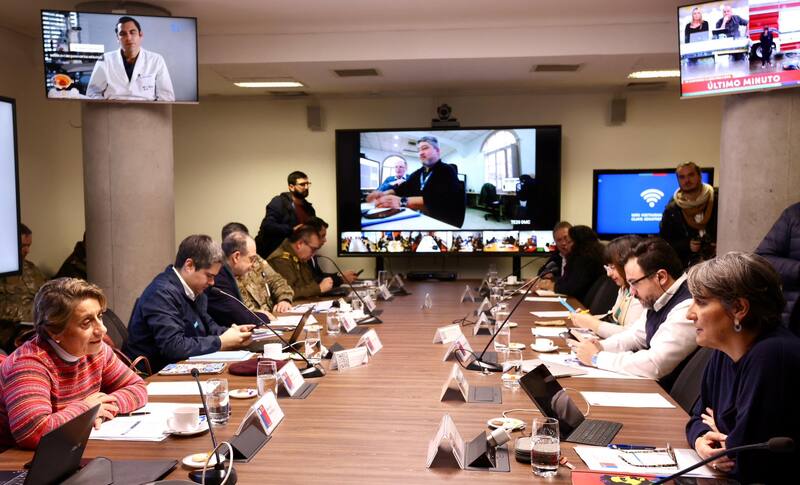 El ministro (s) del Interior, Manuel Monsalve, junto a la directora (s) del Servicio Nacional de Prevención y Respuesta ante Desastres, Alicia Cebrián, encabezaron la reunión que se desarrolló para realizar un balance de afectación por el sistema frontal en la zona centro-sur del país y analizar la situación y cursos de acción a seguir en las regiones afectadas por el evento meteorológico.