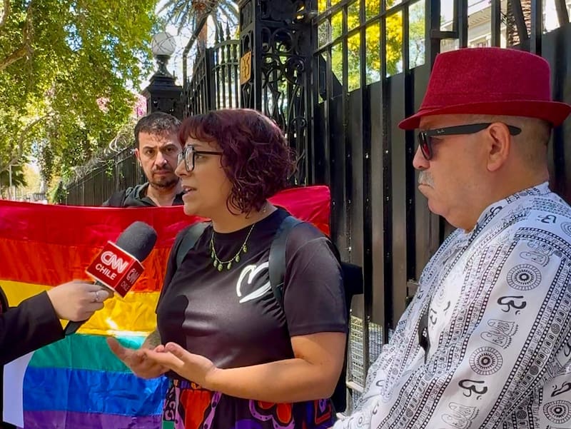 Movilh protesta fuera de la Embajada de Argentina en Chile tras declaraciones de Milei sobre la comunidad LGBTQI+