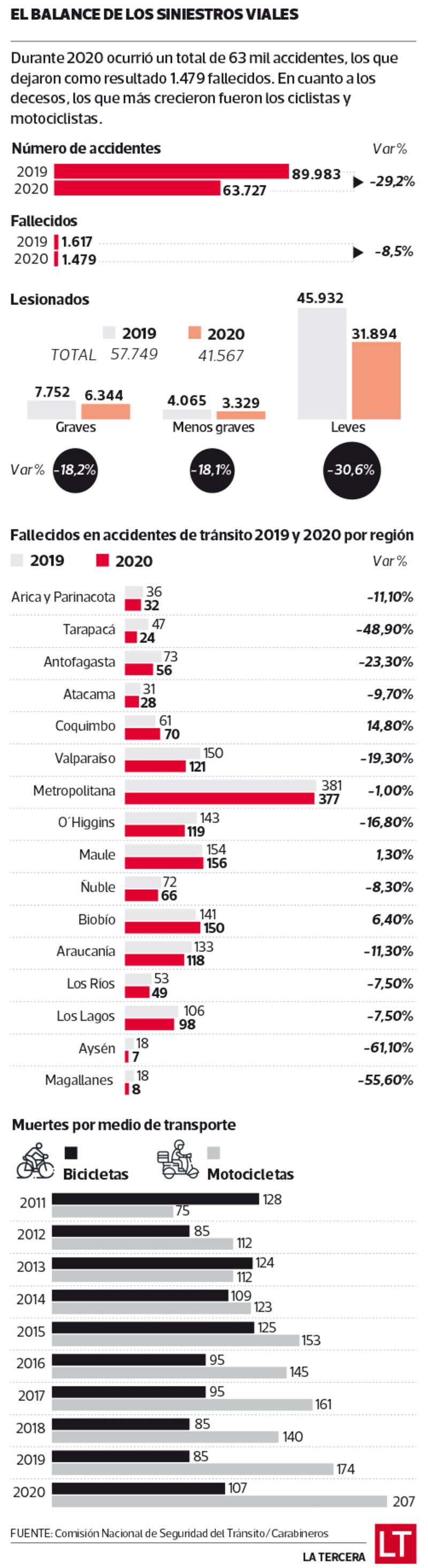 En un año en pandemia, decesos cayeron un 8,5% en 2020 respecto al año anterior. Expertos piden reforzar campañas y seguridad en las calles.
