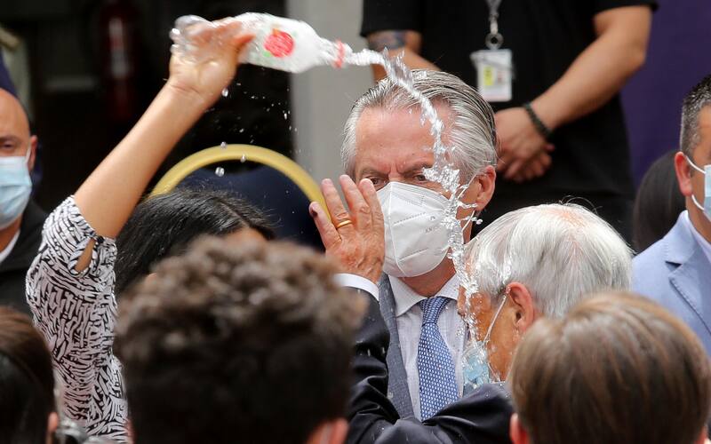 Al finalizar la actividad de conmemoración de los dos años de pandemia en Chile, la mujer se acercó con una botella de agua de medio litro y vertió su contenido en la cabeza del Mandatario. “La agresión política, la violencia política, la agresión contra la institucionalidad de la Presidencia, ya sea para el Presidente Sebastián Piñera o para el futuro Presidente Gabriel Boric es totalmente inaceptable”, dijo el vocero de gobierno Jaime Bellolio. El Presidente decidió no querellarse tras dialogar con el abuelo de la mujer.