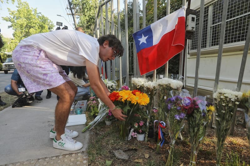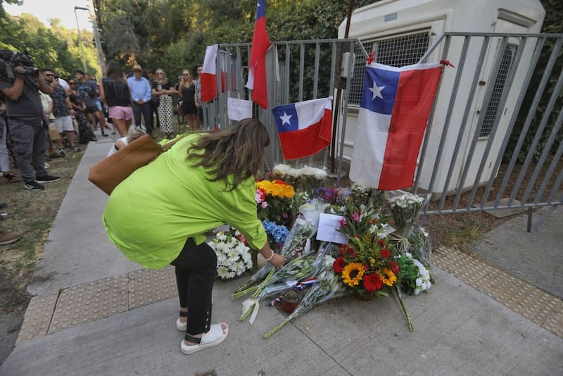 Con ramos de flores, velas y banderas chilenas, la multitud se congregó espontáneamente en la residencia emplazada en el sector oriente de Santiago y entonó el himno nacional. Entre aplausos y vítores, los asistentes -algunos bastante afectados- lamentaron el suceso y recordaron su legado.