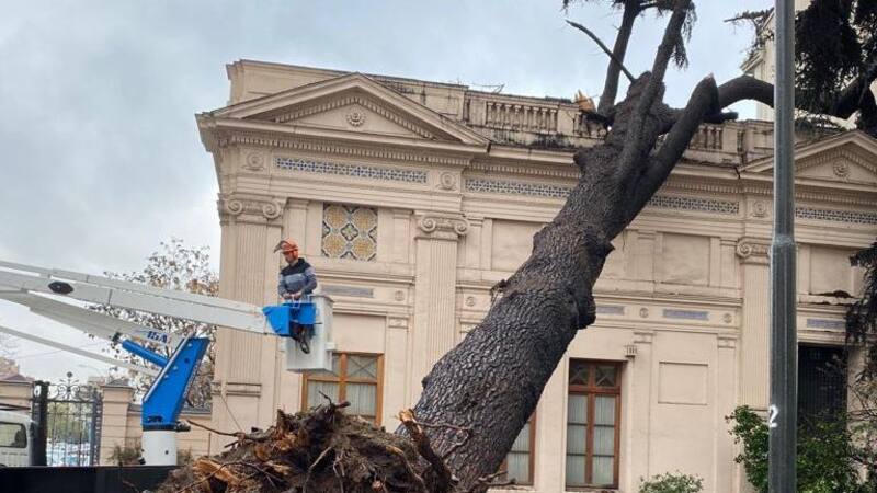 Esto, luego de que la noche del miércoles un cedro del Líbano, de 150 años de antigüedad, cediera producto de las fuertes lluvias y cayera a un costado del histórico recinto de Santiago, afectando al edificio de administración del palacio.
