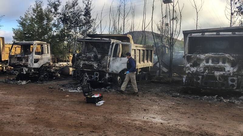 Después, incendiaron varias maquinarias, destruyendo por completo cuatro camiones recolectores de basura, dos retroexcavadoras y dos bulldozer. Posteriormente, sustrajeron una camioneta Mahindra blanca, doble cabina y escaparon.