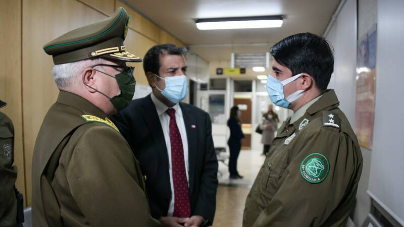 El secretario de Estado fue acompañado por el general director de la institución policial, Ricardo Yáñez, hasta el Hospital de la Dirección de Previsión de Carabineros (Dipreca), desde donde le transmitieron un mensaje de aliento al funcionario herido y a su familia, además de condenar el hecho.