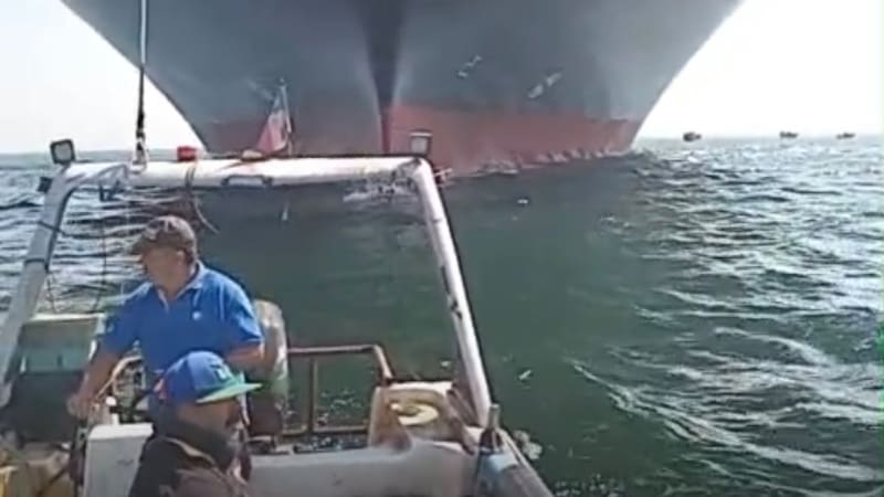 De acuerdo a videos que rápidamente se viralizaron en redes sociales, un grupo de pescadores se instalaron con sus barcazas y pancartas para impedir la entrada de los buques mercantes.