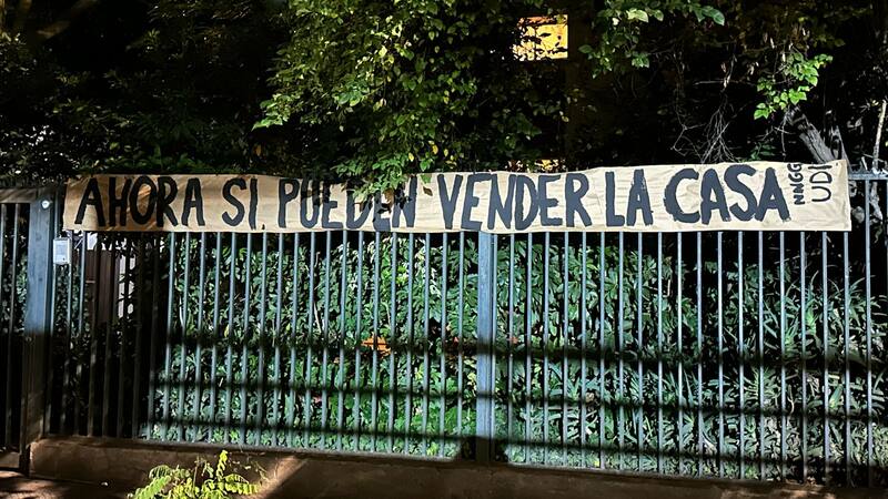 El cartel apareció en la residencia de Guardia Vieja luego de que el Tribunal Constitucional decidiera destituir a la senadora Isabel Allende, precisamente por su rol en la fallida adquisición del inmueble por parte del gobierno.