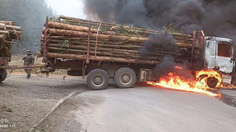 Esta tarde, un nuevo ataque incendiario se registró en la Macrozona Sur, donde dos camiones madereros fueron consumidos por las llamas.