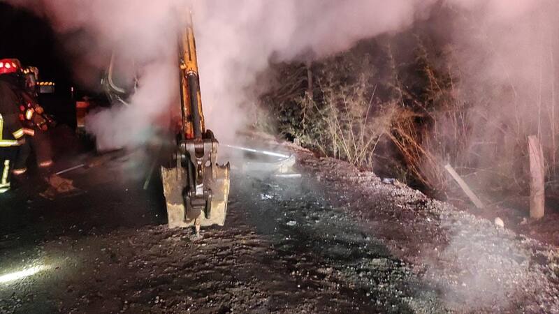 Desconocidos prendieron fuego a una retroexcavadora, la cual estaba destinada a trabajos de reparación de un puente que a mediados de junio había sido quemado, en otro ataque perpetrado en la misma zona. El dueño de la máquina habría resultado con heridas de perdigones tras ser atacado en circunstancias que se investigan.