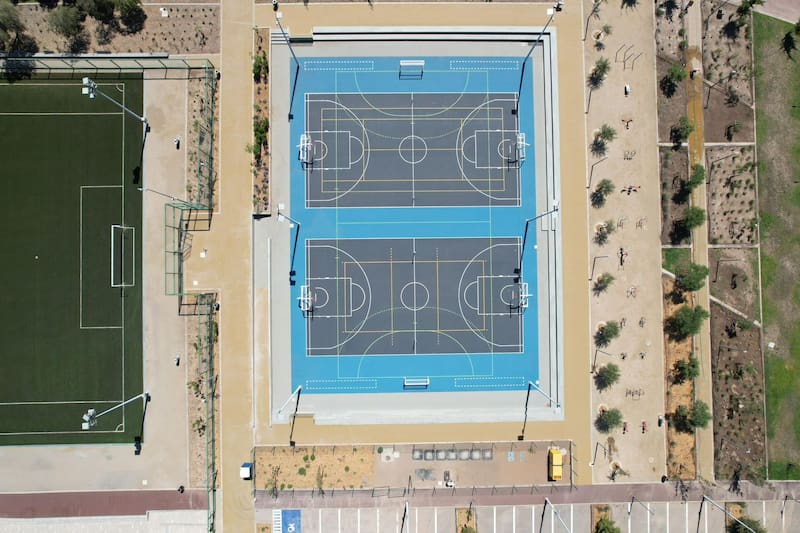 Las intervenciones en infraestructura del megaproyecto consisten en la creación de más de 43.900 m2 de áreas verdes, distribuidos en espacios deportivos conformados por dos multicanchas, una cancha de fútbol de pasto sintético, un edificio deportivo y bicicleteros.