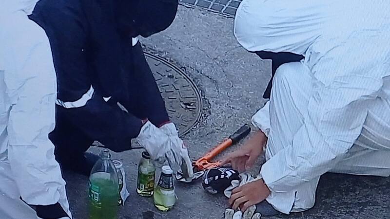 De acuerdo al personal policial, los encapuchados lanzaron cerca de 30 bombas molotov.