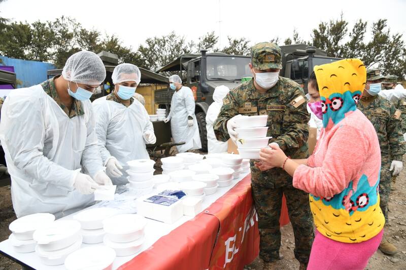 Debido al desempleo y la cuarentena, varios sectores vulnerables se han organizado para ayudar a sus comunidades. En la capital hay al menos 223 cocinas colectivas. Solo en Puente Alto se han distribuido más de 272 mil raciones. El Ejército también apoyó ayer tres comedores sociales en Conchalí.