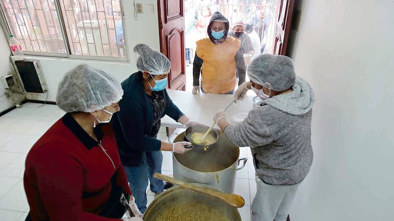 Y a nadie se le olvidan los contagios. Las organizaciones que coordinan subrayan que las raciones son entregadas en envases de plumavit, en platos plásticos o en recipientes para que los beneficiados las lleven hasta sus hogares, con el fin de que mantengan el aislamiento. No se come en comunidad. Y las mismas municipalidades aportan productos y dinero para comprar balones de gas o los insumos que falten.