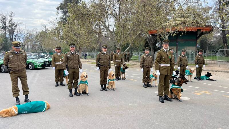 Una de las unidades que se robó las miradas en el desfile, es la unidad canina de Carabineros, que desfiló por la elipse con los perros que se jubilarán tras la Parada Militar y los cachorros que están entrenando en su reemplazo. La institución despidió de sus servicios a Duquesa y Dijon con 7 años; Derby, Cailin, Colomba y Coffee se retiran de Carabineros con 9 años. Los perritos que se sumarán a la labor de Carabineros son Kobun, Kobu, Kurt, Ken, Kaleb, Kyle y Khloe.
