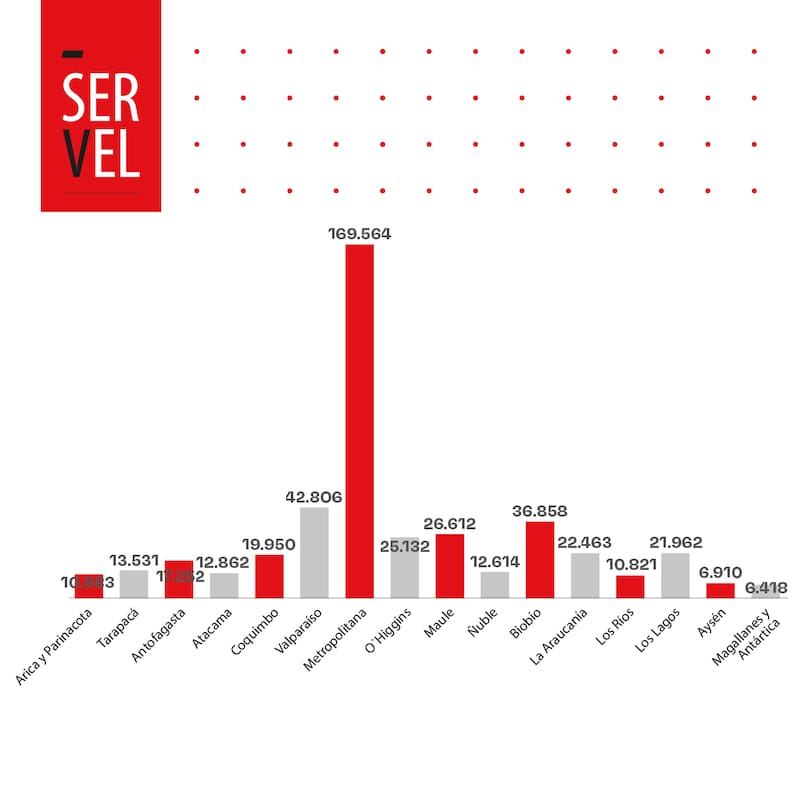 La Región Metropolitana es la que concentra mayor cantidad de militantes: 169.564. Prosigue en la lista la Quinta Región con 42.806 afiliados, mientras que el Biobío se encuentra en el tercer lugar del listado con 36.858 personas inscritas en algún partido político.