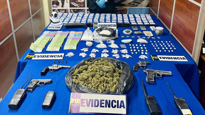 En el procedimiento policial se incautó droga avaluada en $51.551.100 aproximadamente, la que correspondía a: 2.110 gramos de clorhidrato de cocaína (1.150 dosis y granel); 21 gramos de cocaína base (61 dosis); 812 gramos de cannabis sativa (11 dosis y granel); 36,44 gramos de Ketamina (1 dosis) y 12 trozos de LSD.