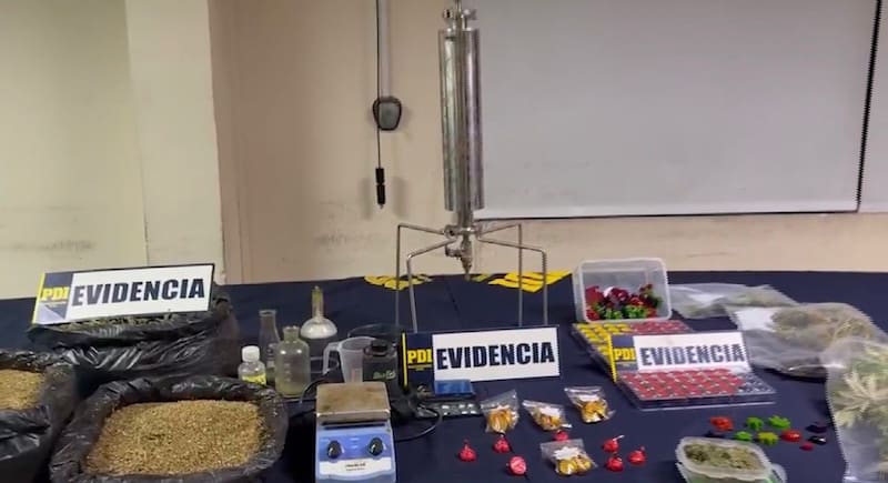 Detectives de la Brigada Investigadora de Delitos Contra el Medio Ambiente y la Salud Pública (Bridesma) de la PDI desbarataron un laboratorio artesanal de drogas en la comuna de La Florida, en el marco de una investigación que se inició por la comercialización de productos derivados del cannabis.