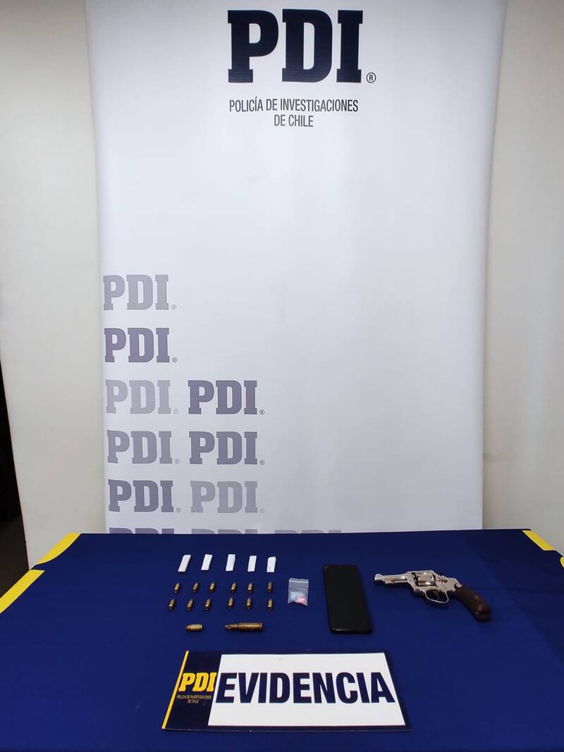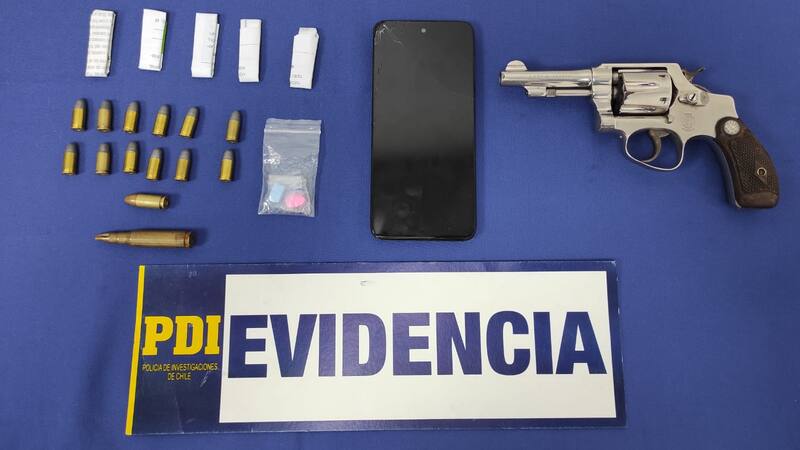 En detalle, los funcionarios de la policía civil incautaron un arma de fuego tipo revólver marca Smith & Wesson, doce cartuchos calibre 32 mm de la misma marca que el revólver, un cartucho de marca Luger calibre 9 mm, un cartucho de fogueo F-85, calibre 7.62 mm, MDMA y clorhidrato de cocaína.