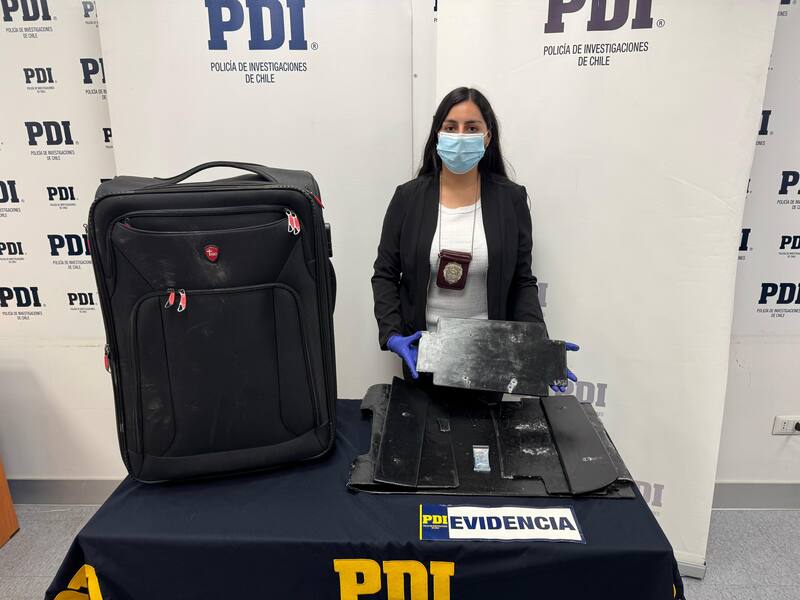 La mujer -chilena y de 30 años de edad- fue objeto de un control rutinario el pasado jueves, en el que se le consultaron detalles sobre su viaje. Sin embargo, luego de que respondiera de manera evasiva, los detectives de la Brigada Antinarcóticos (Briant) Aeropuerto de la PDI revisaron su equipaje.