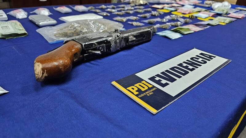 Con estos antecedentes se solicitó a la Fiscalía gestionar una orden de Entrada y Registro para seis domicilios ubicados en el mencionado campamento, donde se incautó $2.700.000 en cannabis sativa y clorhidrato de cocaína. Asimismo, se logró incautar un arma de fuego que utilizaban para mantener el control territorial y amedrentar a los vecinos del sector.