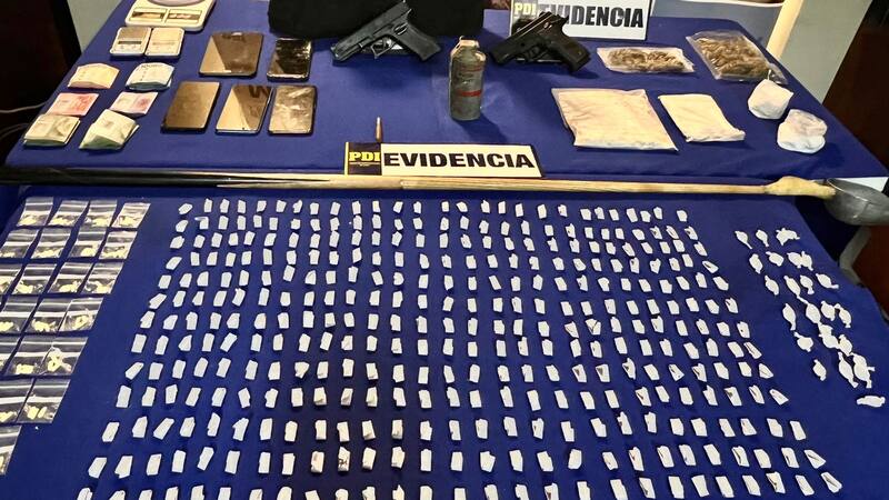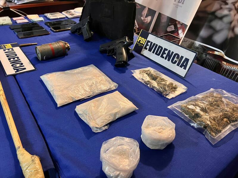 En el procedimiento se incautó cocaína base, clorhidrato de cocaína, cannabis sativa y clonazepam, con un avalúo total de $3.600.000. Además, dos armas y una granada de mano tipo lacrimógena.