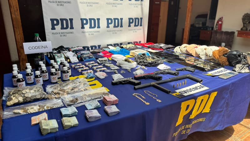 En el operativo, además del arresto de los sujetos, se realizó la incautación de drogas, dinero en efectivo, armas de fuego y especies asociadas a robos anteriores cometidos por la banda.