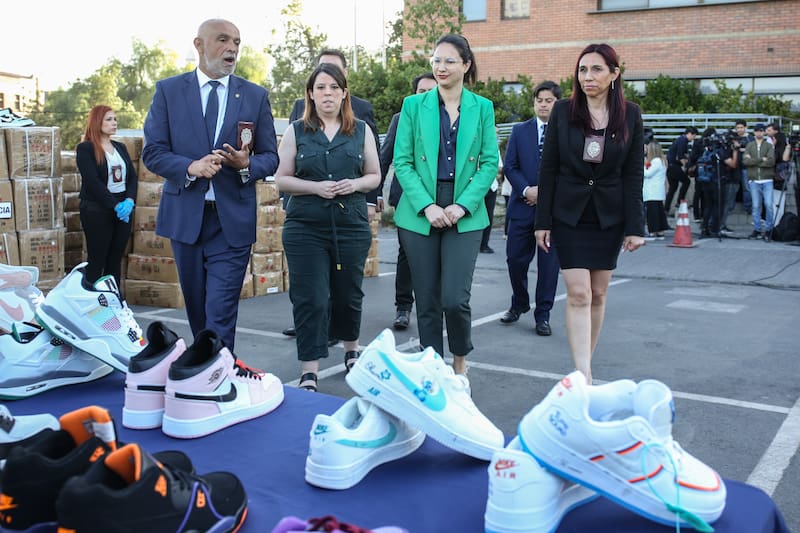La mañana de este miércoles, el jefe de la Región Policial Metropolitana de Santiago, prefecto inspector Jorge Valdés, junto a la delegada presidencial Constanza Martínez y la alcaldesa de Santiago, Irací Hassler, dieron cuenta de una gran incautación de zapatillas falsificadas.