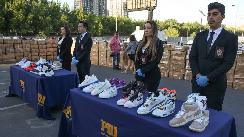 “A raíz de este trabajo investigativo, la Policía de Investigaciones de Chile (PDI) logró la detención de cuatro personas, tres extranjeros y un chileno. Se incautaron más de 32.000 pares de zapatillas, avaluadas en 3.700 millones de pesos”, informó el prefecto inspector.