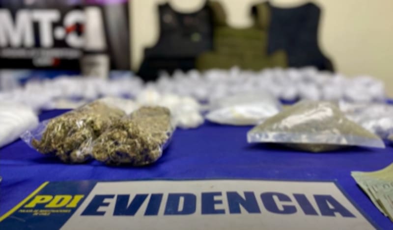 Durante el operativo también se incautó un arma a fogueo tipo pistola, elementos de dosificación y tres chalecos antibalas, los que —según la PDI— eran utilizados por los imputados para proteger los puntos de venta y amedrentar a eventuales rivales o terceros.