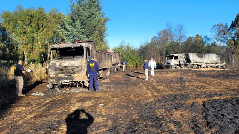 La Policía de Investigaciones de Temuco investiga el ataque de dos camiones agrícolas que se produjo a plena luz del día y en vigencia del Estado de Catástrofe.