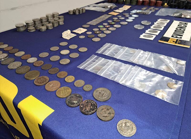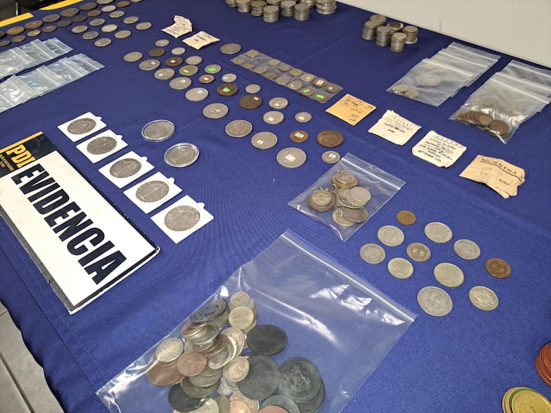 La policía indicó que la colección pertenecía a un “reconocido coleccionista a nivel nacional, especializado en la Numismática". Entre las monedas también hay piezas internacionales y medallas conmemorativas.