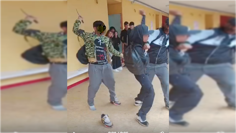 En las imágenes compartidas se aprecia como hasta tres alumnos golpean a un solitario estudiante en reiteradas oportunidades. Uno de los agresores portaba un arma blanca con la que apuñala a la víctima por la espalda. Pese a lo anterior, la pelea continúa.