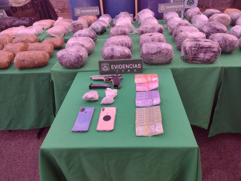 Según los antecedentes entregados, personal de OS7 mediante los servicios desplegados en una garita de control fiscalizaron a un bus de la empresa TUR BUS, dónde el perro antidrogas Fuscsia dio alerta positiva en dos bolsos que se encontraban en el portamaletas del bus, los cuales contenían droga en su interior.