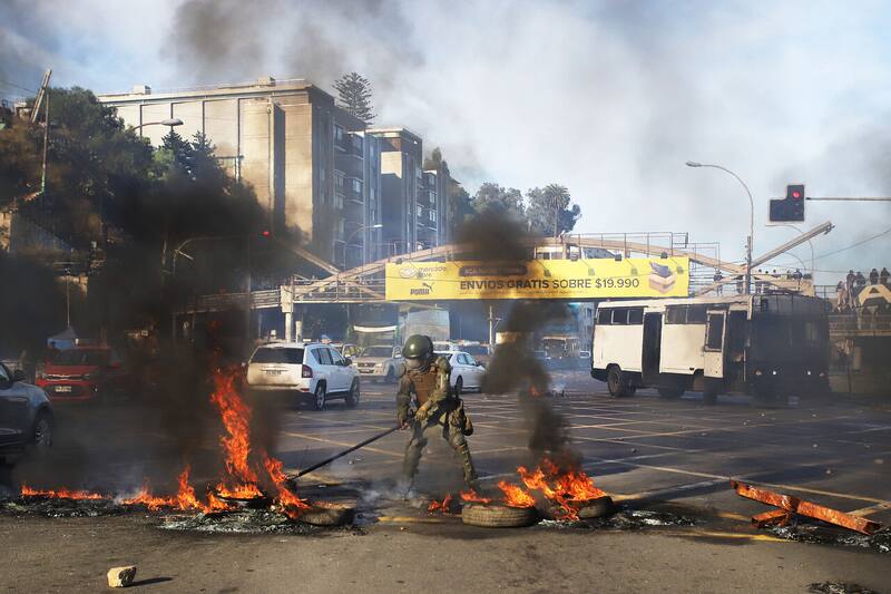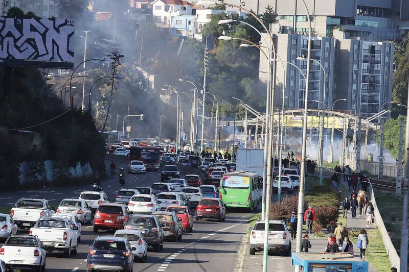 Asimismo, las protestas provocaron retrasos en la circulación del tren de la Quinta Región, que une cinco comunas a través de 20 estaciones.