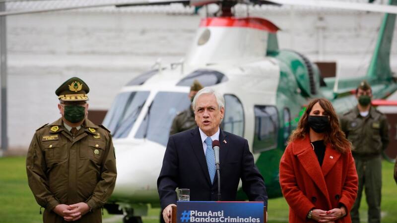 Desde la Escuela de Suboficiales de Carabineros el Presidente Sebastián Piñera, en compañía de la subsecretaria de Prevención del Delito, María José Gómez, y el General Director de Carabineros, Ricardo Yáñez, anunció la mañana de este jueves el denominado “Plan Anti bandas, armas y narcotráfico”.