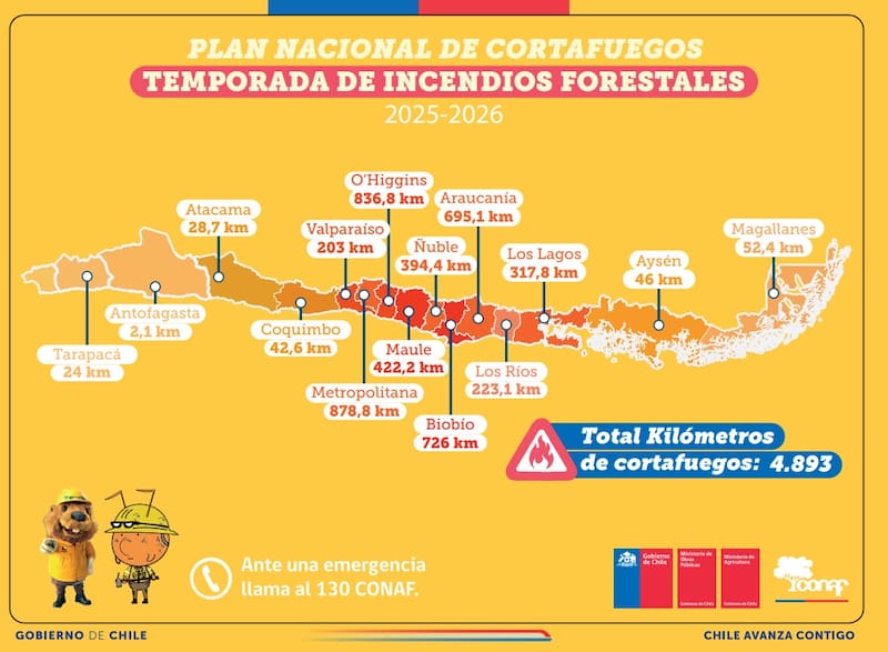 Al respecto, la ministra López indicó que en regiones se efectuarán más kilómetros que en la RM, puesto que “hay un mayor riesgo de incendios y ahí se están concentrando los esfuerzos”. Eso sí, precisó que, “igualmente” las acciones se están llevando a cabo “en todo el país, entre la región de Tarapacá y Magallanes”.