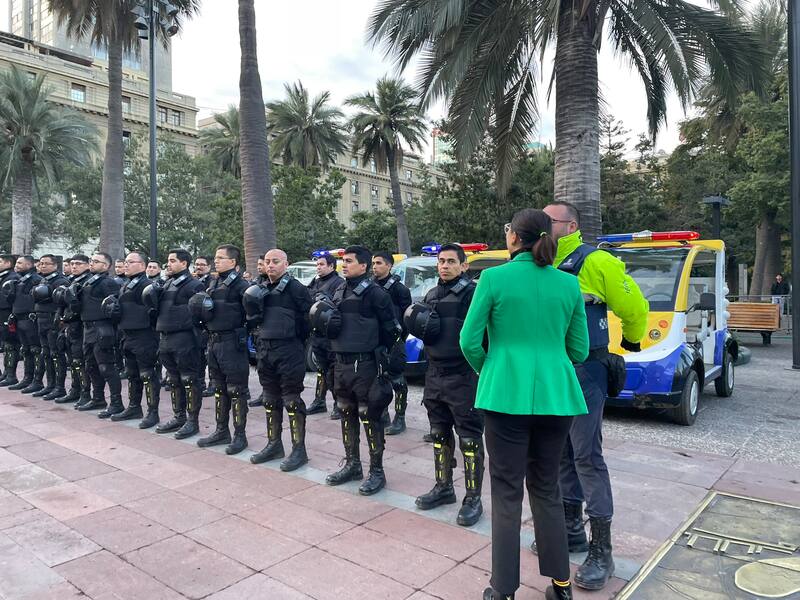 “Son 40 funcionarios que van a estar trabajando diariamente en el casco histórico para aportar a la seguridad en coordinación permanente con Carabineros”, anunció la edil. “Son funcionarios que cuentan ya con su equipamiento, con su capacitación, con casco, chaleco antibalas, con bastón retráctil, con las herramientas para desarrollar un trabajo de copamiento preventivo en distintos lugares de nuestro casco histórico”.