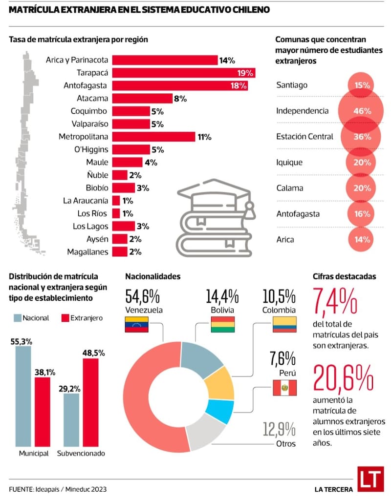 Magdalena Vergara, directora de IdeaPaís, señaló a La Tercera, que la creciente tendencia migratoria en Chile está generando una mayor demanda de matrícula extranjera, lo que plantea numerosos desafíos. “No podemos reducirnos a entender este fenómeno desde una óptica de oferta y demanda de matrícula. Las familias que hoy llegan a Chile se encuentran en una situación de vulnerabilidad social y económica multidimensional que urge atender”, afirma Vergara.