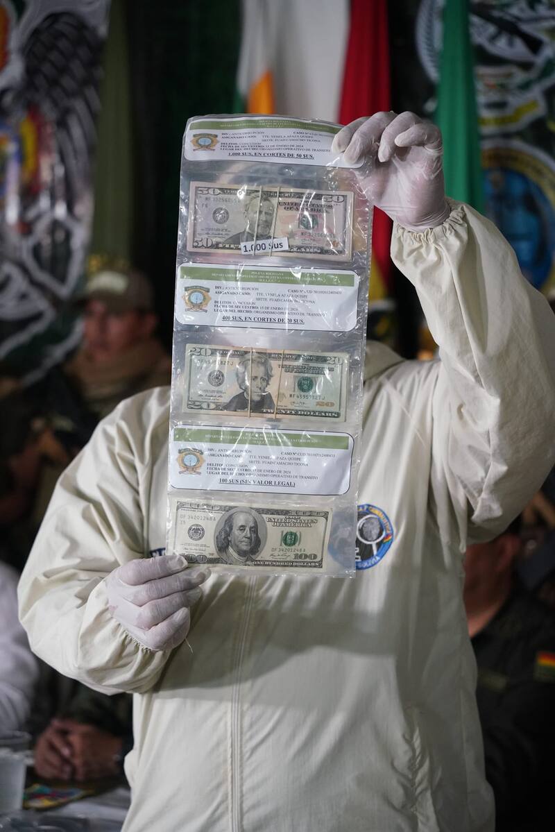 “Éste puede resultar siendo el pago de una sustancia controlada o en su caso el dinero para comprarla. Es la hipótesis que está siendo analizada. Ese dinero salió de un banco y estamos haciendo seguimiento de carácter internacional para establecer las circunstancias de retiro de esa moneda en esa entidad financiera”, dijo el viceministro Jhonny Aguilera, en declaraciones consignadas por el medio La Razón.