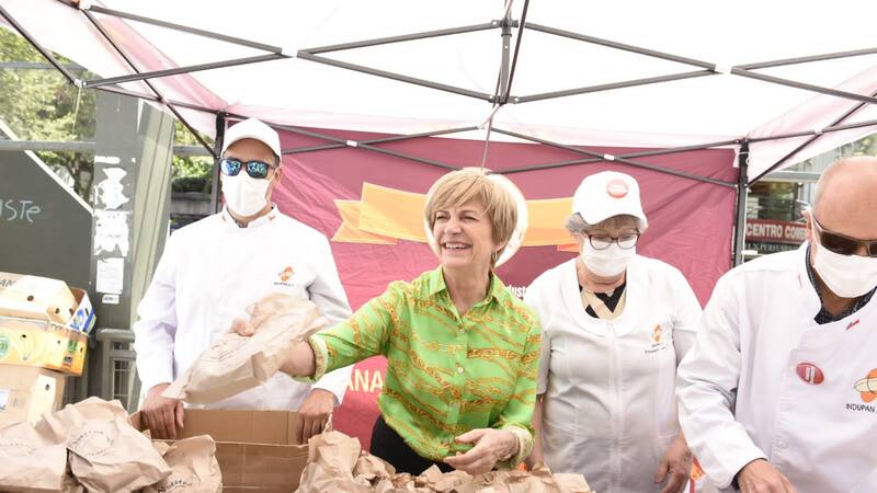 La tarde de este jueves la alcaldesa hizo entrega de 10 mil marraquetas a los transeúntes del Paseo Las Palmas.