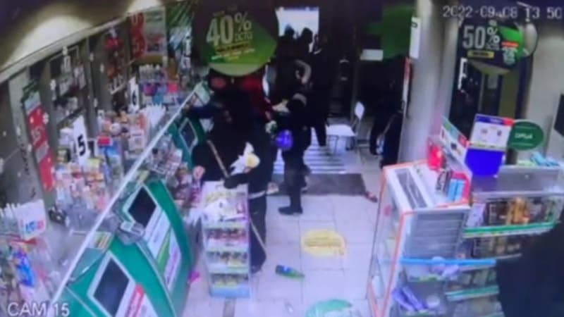 El momento quedó registrado en la cámara de seguridad dispuesta en el local, y como se aprecia en las imágenes, los sujetos sustrajeron una serie de productos. Entre ellos, tomaron preservativos, bebidas, espuma de afeitar, tinturas de pelo, pañales, y todo lo que pudieron meter dentro de sus mochilas.