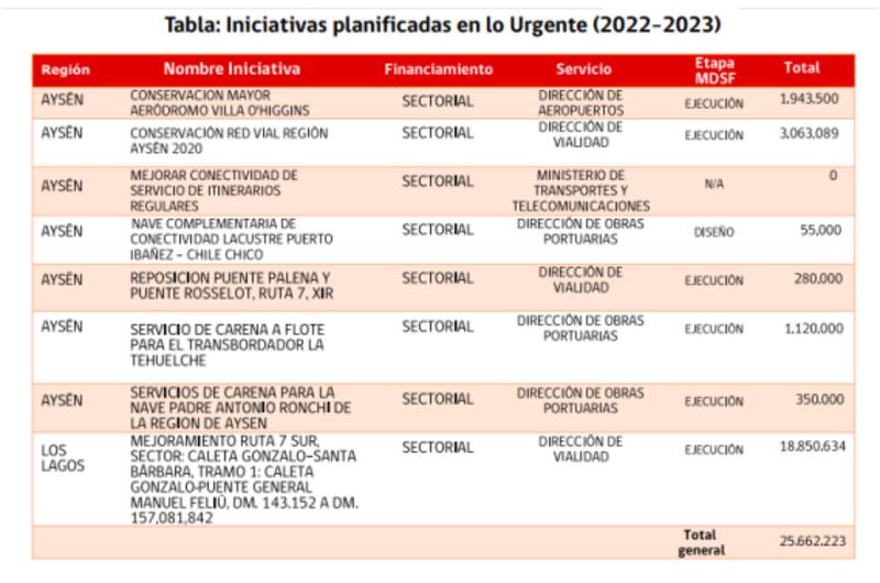 Durante la actual administración se espera avanzar en la pavimentación de 140 kilómetros (2022-2026). “Vamos a pavimentar nuevos tramos de la Carretera Austral en la Región de Aysén y en la provincia de Palena con financiamiento del MOP. Y estas obras comenzarán el 2023″, dijo Boric.