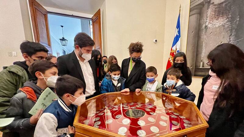 En Palacio, el Presidente Boric dio inicio a las actividades de este fin de semana encabezando un tour por el lugar. Al finalizar el recorrido, el mandatario le entregará a cada niño las respuestas a las cartas que le hicieron llegar a través de la Dirección de Gestión Ciudadana de la Presidencia, en el Salón Matta.