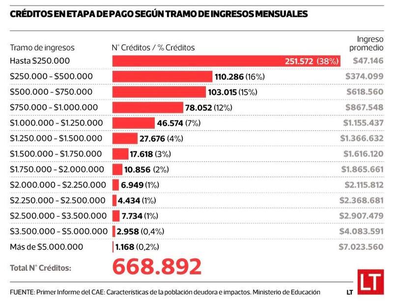 El informe, que analizó los datos de 669 mil deudores que estaban en etapa de pago hasta diciembre de 2020, arrojó que el 69% de las y los deudores en etapa de pago posee ingresos mensuales inferiores a $ 750.000 y el 81% tiene ingresos menores a $ 1.000.000.