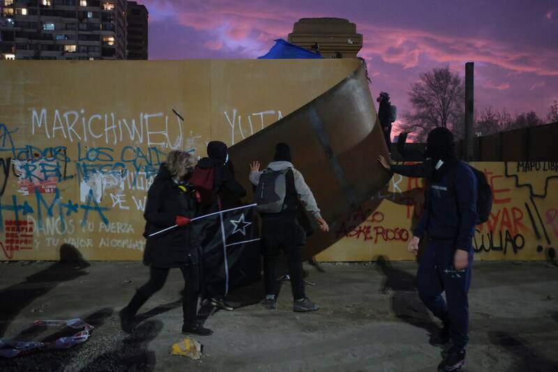 El personal de la Prefectura de Control de Orden Público de Carabineros que vigila permanentemente la rotonda se retiró del lugar y manifestantes hicieron ocupación del punto, intentando derribar el muro que se instaló para proteger la zona en la que estaba emplazado el monumento ecuestre al general Manuel Baquedano.