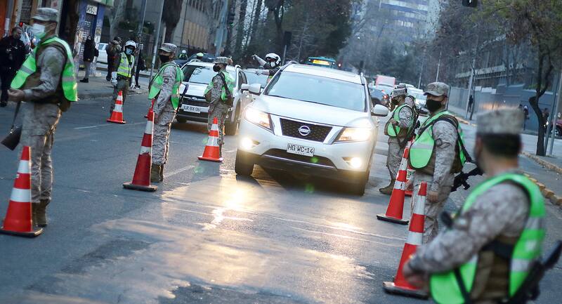 Mientras, unos metros más hacia el poniente, el atochamiento de autos se mantuvo durante toda la jornada, por uno de los numerosos puestos de control que revisa a quienes transitan desde Santiago Centro a Providencia.