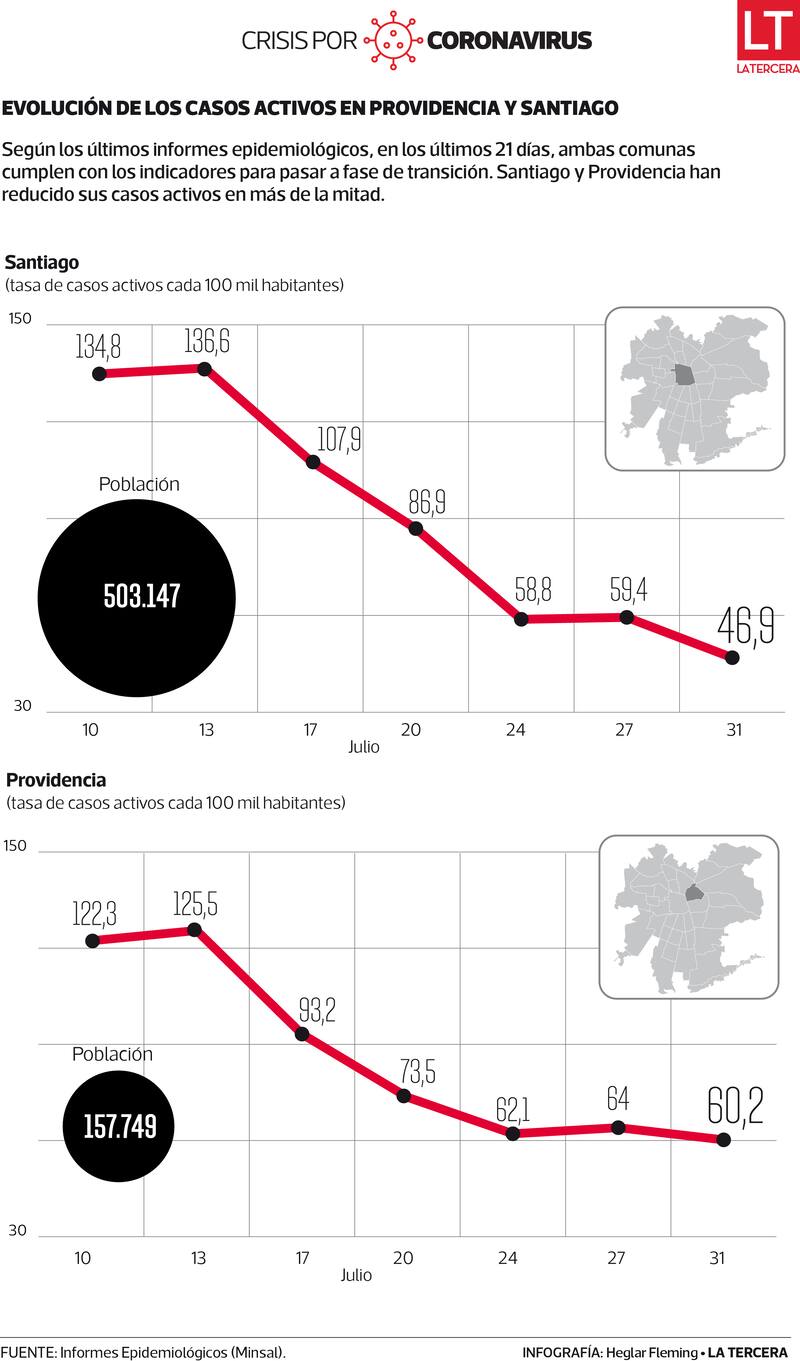 El ministro de Salud, Enrique Paris, lo ha aclarado en más de una ocasión: es el comité de emergencia, en su conjunto, el cual decide si una comuna sale o no del confinamiento. La mesa, a la que asisten las autoridades sanitarias del país, el Presidente Sebastián Piñera, parte del comité político, algunos ministros sectoriales y expertos, debe definir hoy si estima que Providencia y Santiago están en condiciones sanitarias (ver infografía) para salir de la prolongada cuarentena y transitar a fase de transición. Esto implicará, entre otras cosas, terminar con el confinamiento de lunes a viernes.