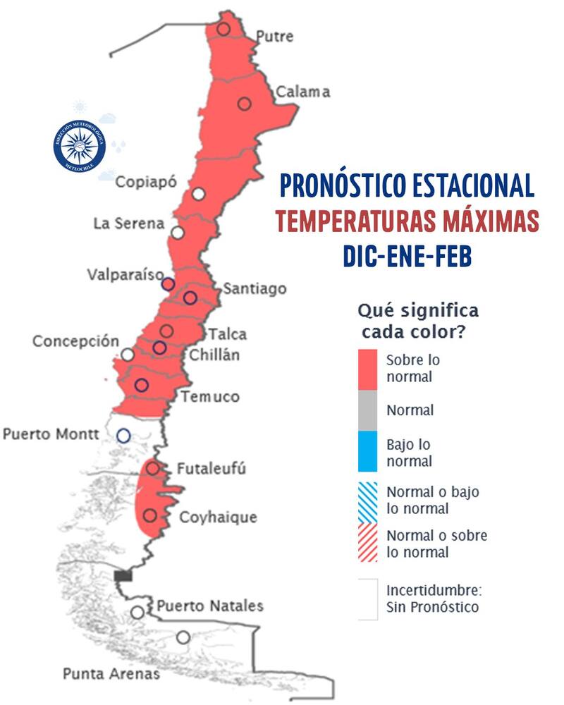 Este 22 de diciembre se inició el verano en el país y desde la Dirección Meteorológica de Chile (DMC) entregaron un pronóstico para el trimestre de diciembre, enero y febrero, donde las temperaturas máximas sean más altas de lo normal.