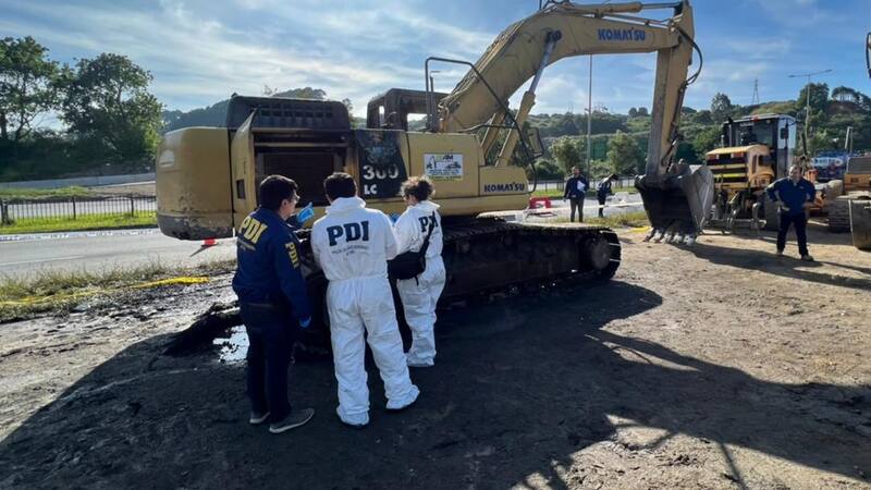 Investigan ataque en obras de puente ferroviario en Concepción: quemaron retroexcavadora y dejaron mensaje alusivo al tema mapuche